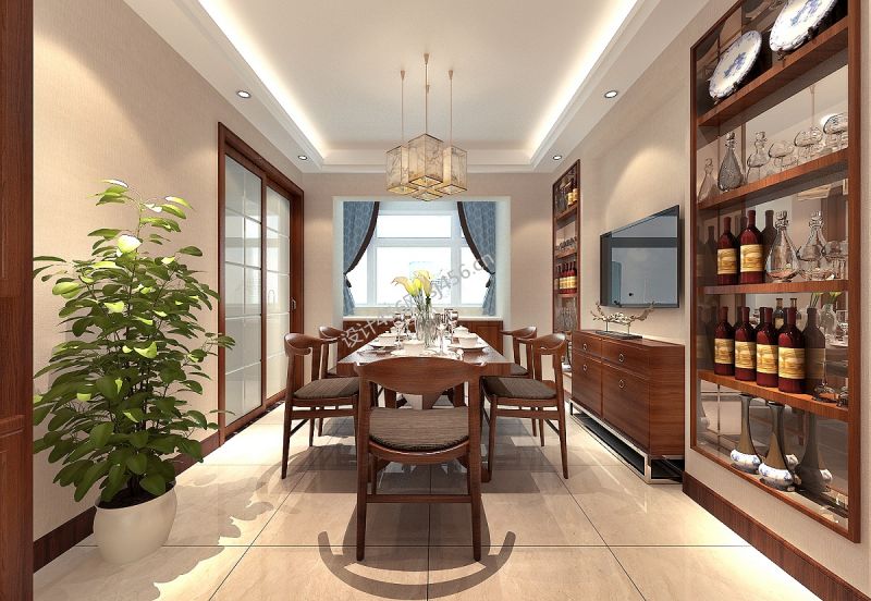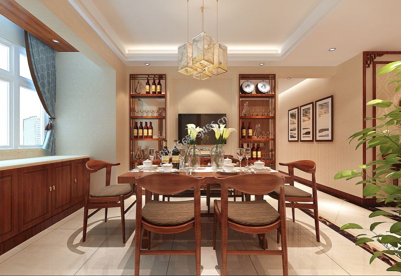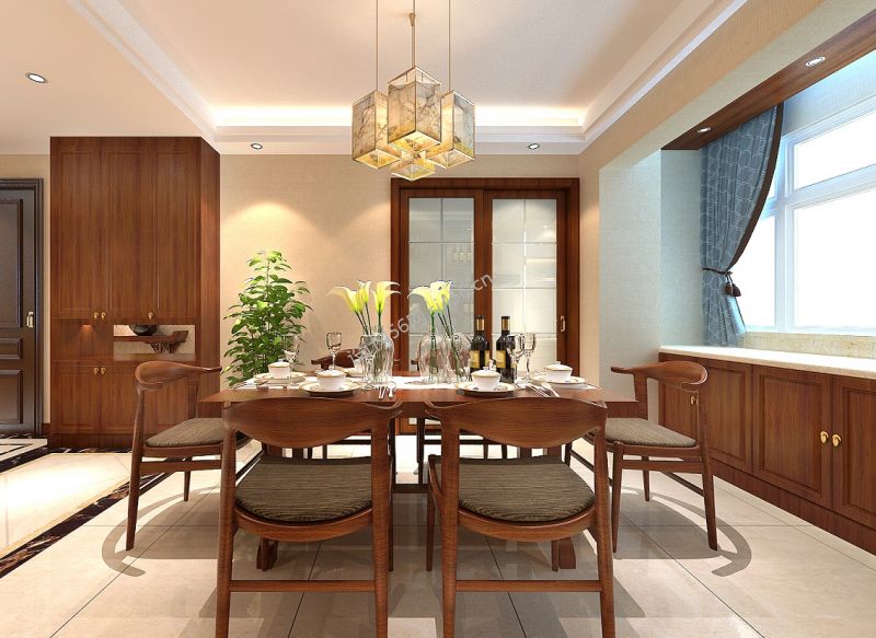 2020新中式餐厅设计 飘窗柜子设计图片
