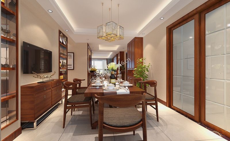 2020新中式风格餐厅效果图 2020餐厅吊灯装修效果图片