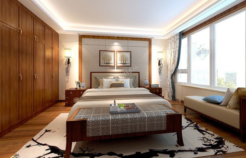 2020典雅新中式风格卧室装修图片 卧室实木衣柜