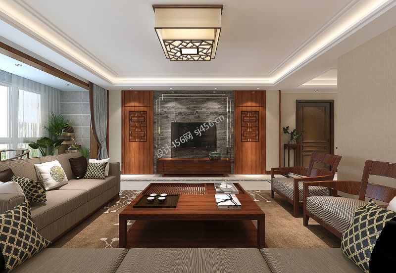 2020典雅新中式客厅效果图 电视背景墙设计