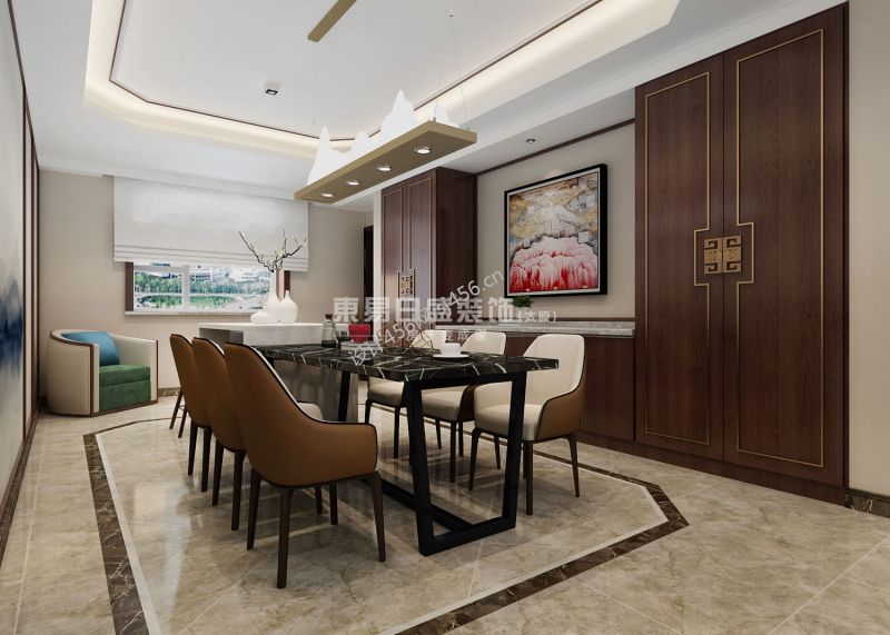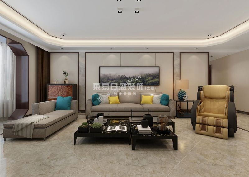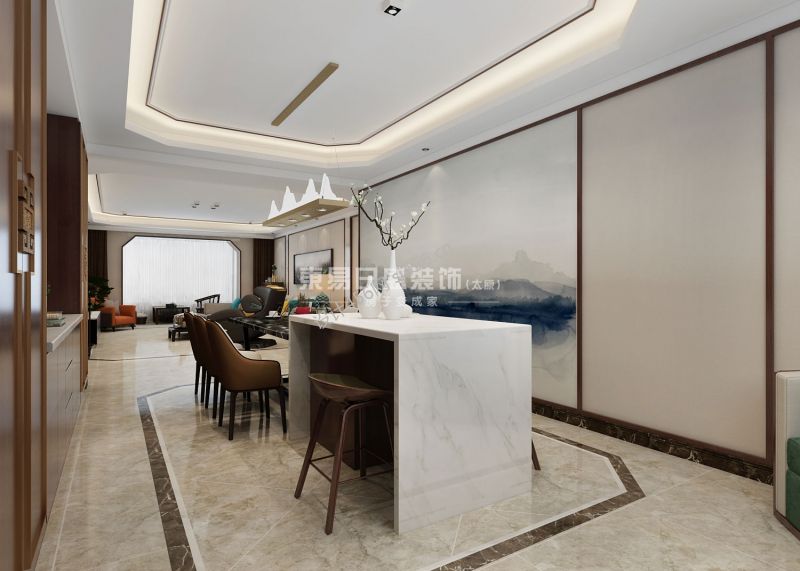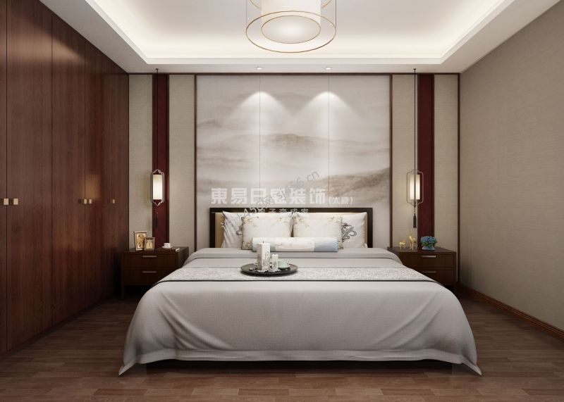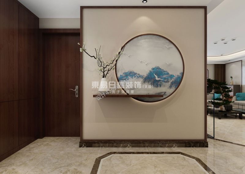 设计理念: 本户型为现代中式风格,整个空间采用卡其麻面壁纸,与淡雅的浅灰色石材、木色护墙及线条形成色彩对比,使得整个屋子不会过于冷硬;也强调墙面的木色线条的装饰性,又能避免整个墙面与栗色的入户防盗门产生太大色差。在卧室里,设计师大胆采用卡其色为主调,延续风格的直线条元素。卧室区域以床头一大幅山水画为之卧室的一大亮点,打破了木色的些许沉默,张扬的个性也在那山水画中得到释放。 本户型为现代中式风格,整个空间采用卡其麻面壁纸,与淡雅的浅灰色石材、木色护墙及线条形成色彩对比,使得整个屋子不会过于冷硬;也强调墙面的木色线条的装饰性,又能避免整个墙面与栗色的入户防盗门产生太大色差。在卧室里,设计师大胆采用卡其色为主调,延续风格的直线条元素。卧室区域以床头一大幅山水画为之卧室的一大亮点,打破了木色的些许沉默,张扬的个性也在那山水画中得到释放。