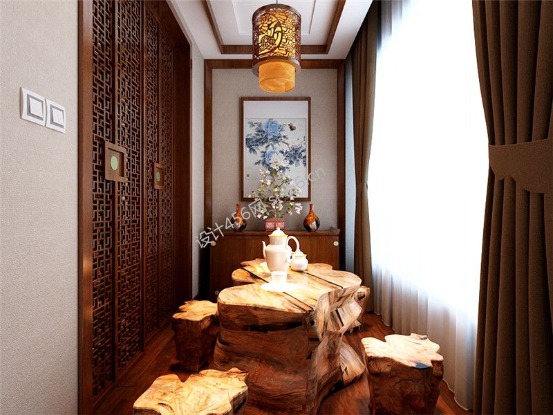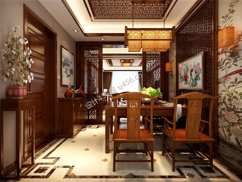 设计理念: 整个房间的设计以传统的中式元素作为依托,镂空花格,实木家具,地面拼花,雕花瓷片完美的展现中式风格的沉稳及奢华。在壁纸的选择上依然沿用了与花格有同元素的中式壁纸。雕花的瓷片则是选择富有寓意的花开富贵。就连地面拼花也选择回纹,软硬间密切的搭配,浑然一体。 整个房间的设计以传统的中式元素作为依托,镂空花格,实木家具,地面拼花,雕花瓷片完美的展现中式风格的沉稳及奢华。在壁纸的选择上依然沿用了与花格有同元素的中式壁纸。雕花的瓷片则是选择富有寓意的花开富贵。就连地面拼花也选择回纹,软硬间密切的搭配,浑然一体。