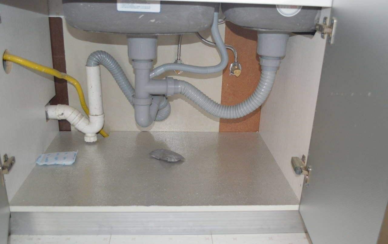 水槽下方的柜子因为有水管,比较潮湿,时间长了会发霉,很不卫生,地板也会变形,在地板铺设铝箔纸就可避免这一问题。