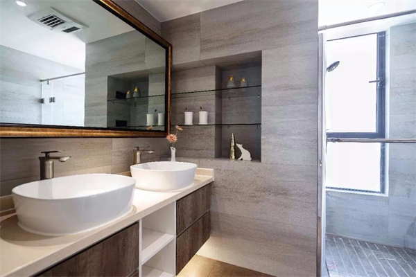 如果把壁龛设计在洗手盆的旁边,可以放一些卫浴用品,比如牙膏牙刷这样常用的东西,这样就不用摆在洗手台的表面,拿放的时候很方便,也可以让空间变得更加整洁。