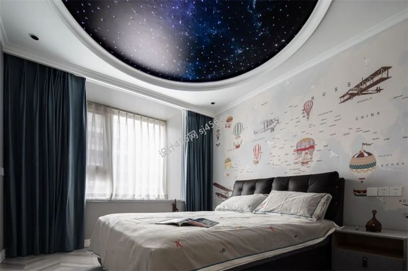 130㎡现代轻奢风三居室男孩房背景墙装修图片