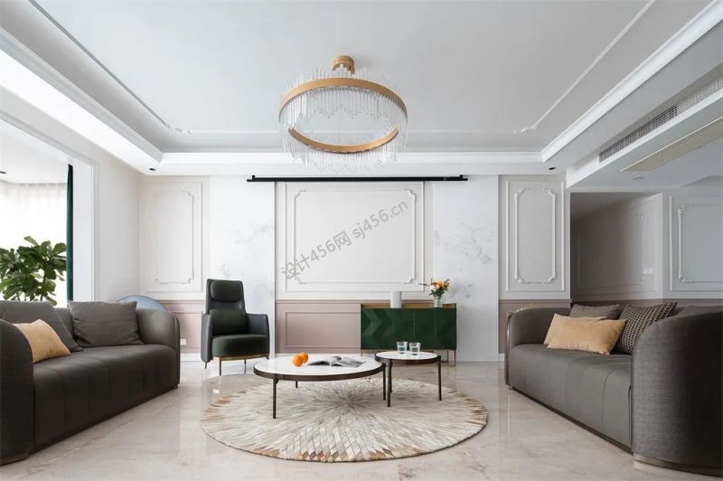 130㎡现代轻奢风三居室客厅沙发墙装修图片