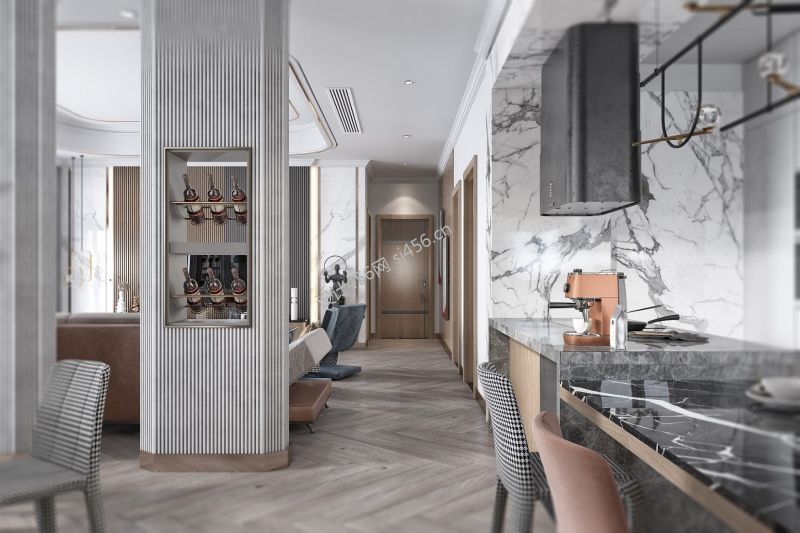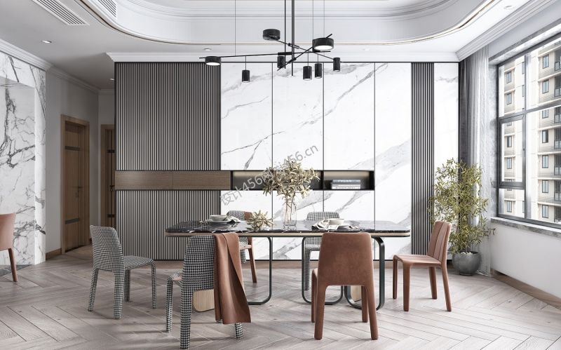 135㎡三居室现代轻奢餐厅吊灯装修效果图
