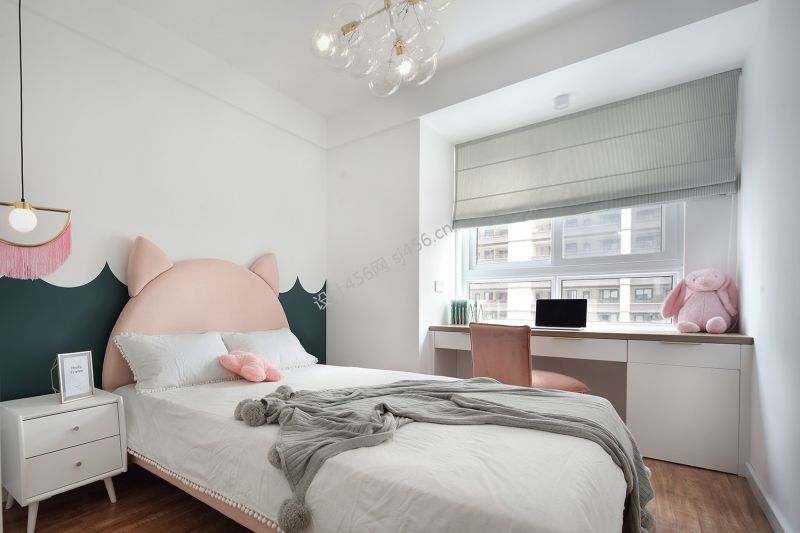 轻奢风格三居室卧室床头背景墙壁画装修设计图