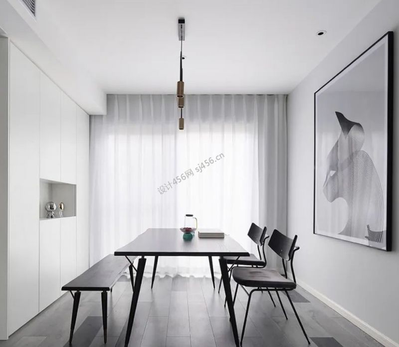 极简风格126平餐厅背景墙装饰设计效果图