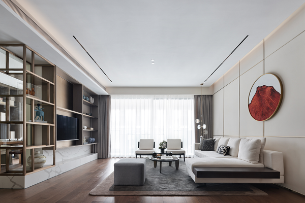 新中式风格讲究空间的层次感以及跳跃感。尤其是在隔绝视线的地方,使用中式的屏风、中式木门、工艺隔断等。通过这种新的分隔,单元式住宅展现了中式家居的层次美,再加上简约的造型为基础,增添了中式元素,使整体空间更加丰富,有格调又不显压抑。