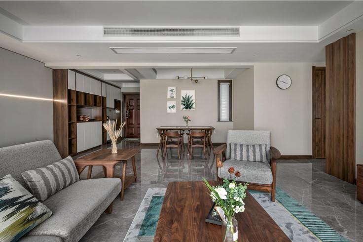 用温柔缱绻的浅灰包容醇厚质朴的原木,线条干净利落层次分明。