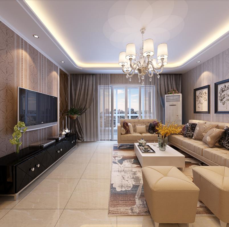 渭南积木家装饰-渭南恒大珺睿府128平米三居室现代简约风格效果图-客厅装修效果