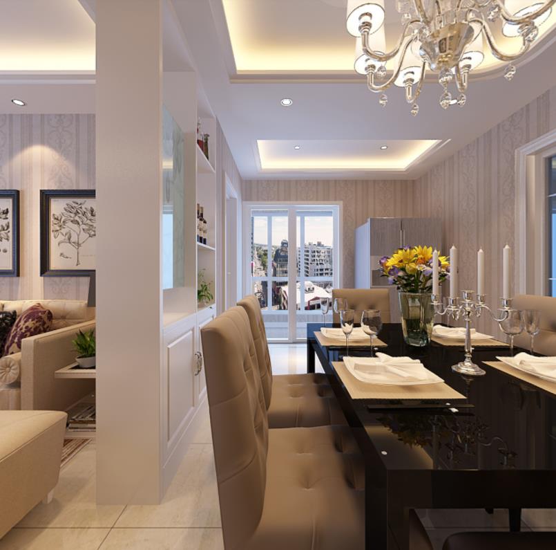 【设计说明】:和业主沟通了之后确定定位成现代简约风格,主色系定位成暖色浅色系。推拉门厨房,冰箱摆放在餐厅与北阳台之间,餐厅定位在客厅和厨房中间区域,餐厅与客厅之间设计了通透装饰柜增加亮点。电视背景采用艺术造型硅藻泥,成品木线条收口,体现背景的线条性,增加特色,给人看上去时尚,大气,温馨!