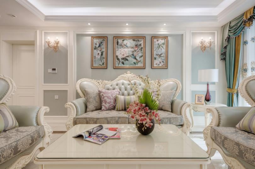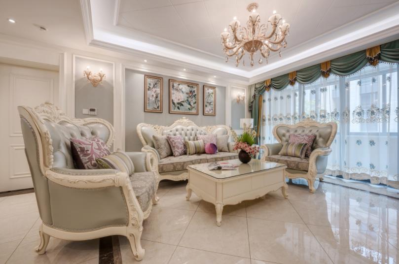 渭南家装e站-渭南保利锦悦和府106平米三居室欧式风格效果图-客厅效果