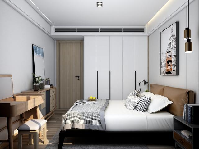 次卧是给客人准备的客卧,延续了主卧的装修风格,白色与原木色的组合搭配,简约大气,沉稳又不失格调。