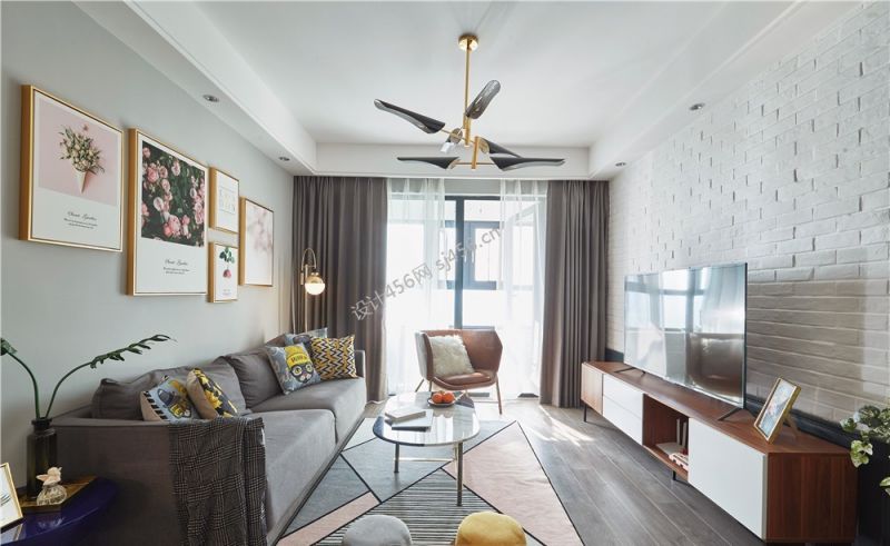 80平现代简约客厅二居装修效果图