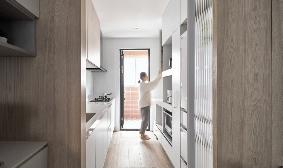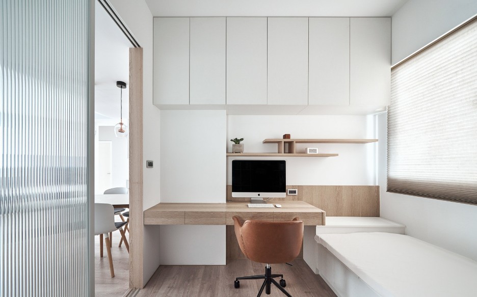 电视墙设计简单,涂料打底即可简单耐看不过时,悬挂的层板架+抽屉柜组合,满足收纳需求,又提升层次感。餐厅作为厨房和书房的轴线,简单的设计不造作又实用。厨房和书房采用长虹玻璃门隔断,不影响透光效果。当然主卧和卫生间设计也不错,都是简洁为基础,加入简约时尚的软装设计,简约舒适。