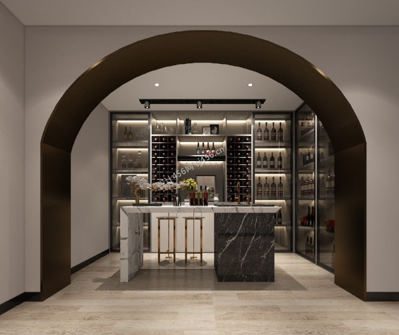 106平米轻奢酒柜三居室装修实景图