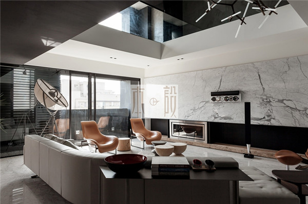 原有格局即为已具有挑空的毛胚屋状态,设计师将下方楼层的建置以聚会社交功能为主,居家机能则安排于上方楼层。