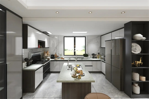 开放式厨房中需要拥有足够的储物空间,无需在台面放置太多的厨房物品,这样会让厨房的整体视觉感受不够美观,因此在厨房中的可以设计一些橱柜来进行厨房用品的储物,可以在一些转角的地方装修合适吧壁柜,能够充分的利用到空间。