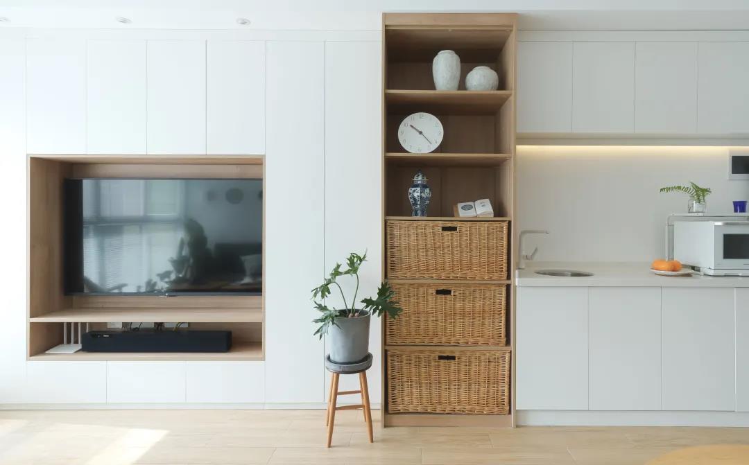 常规电视矮柜的储物能力其实一般,如果有小孩的可以选购开放式储物柜,公区变成小朋友的玩乐区后,这里可以放置玩具,还能引导小朋友将玩具归位,利于成长。