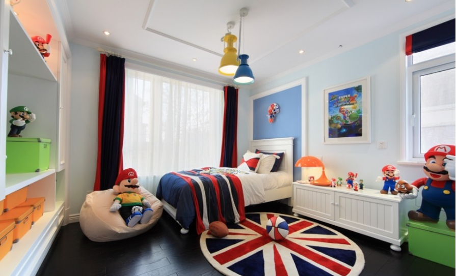 由于儿童的自我保护能力较弱,因此我们在布置时,要首先考虑这样布置是否安全。我们在购买家具时,要选择平稳坚固,边角最 好是圆润的,并且我们可以在边角上安上一些防撞条,这样可以起到一定的保护作用。还有我们最 好是给儿童房间里的电源插座都添上配备保护措施,这样可以减少孩子触电的概率。