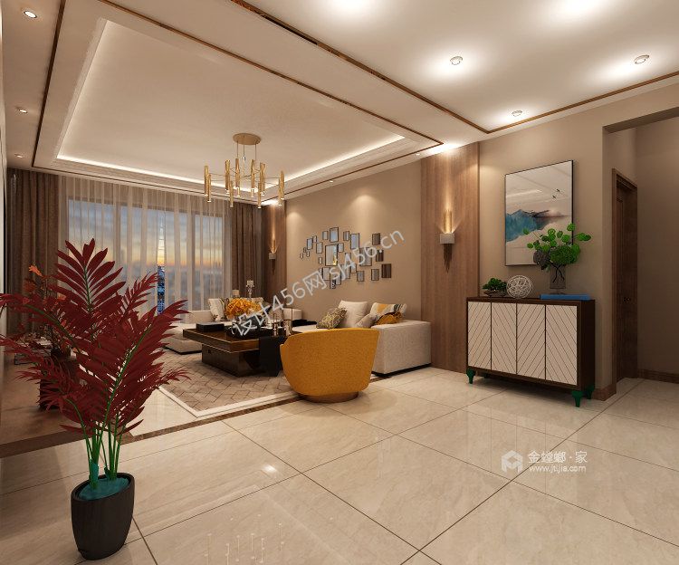 华润幸福里138平米现代三居客厅吊顶装修设计效果图