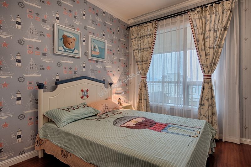 美式风格145平米四室两厅卧室窗帘装修效果图