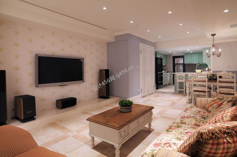 121平米田园风格三居客厅壁纸电视墙装修效果图