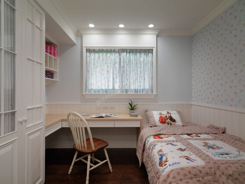 121平米田园风格三居卧室壁纸背景墙装修效果图