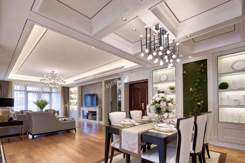 简约欧式风格127平三居室餐厅吊顶灯装饰图片