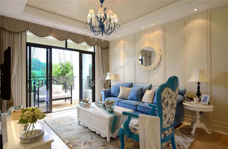 地中海风格123平米三居室书房背景墙设计图片
