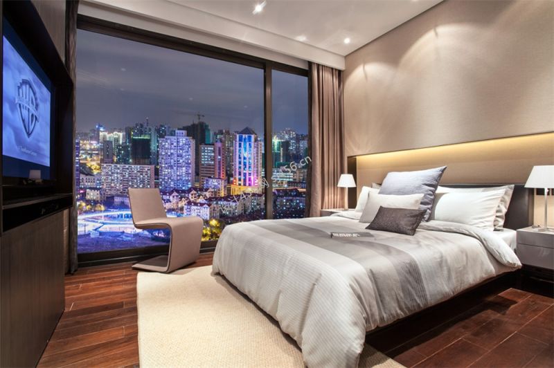 130平米现代风格卧室落地窗效果图
