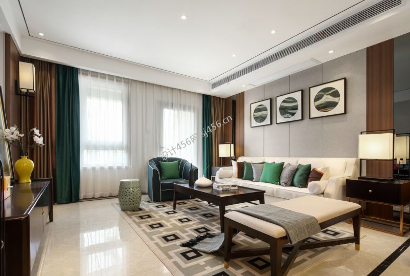 详情120平米现代中式风格三居室客厅沙发墙设计图片