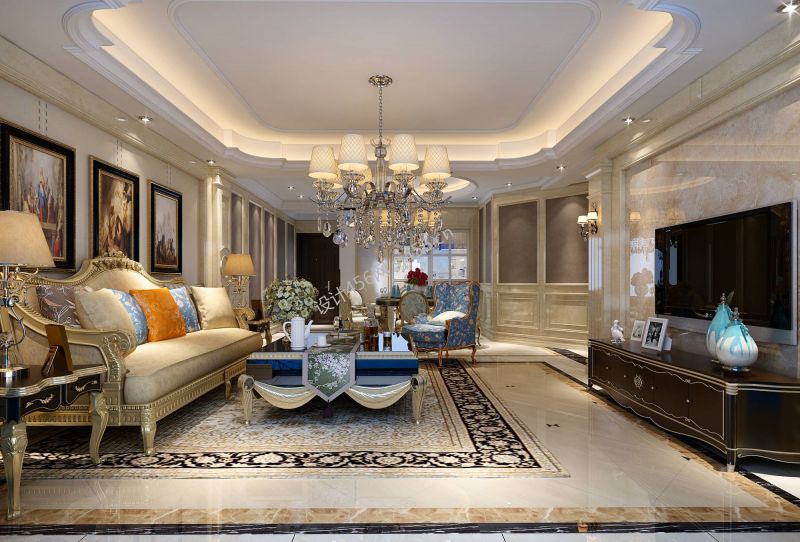 欧式风格145平米三居室客厅吊顶装修设计效果图