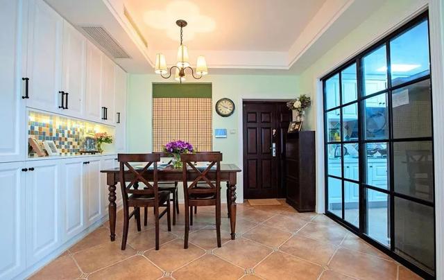 美式风格的吊顶处理手法也是比较风格,因为美式衍生的混搭较多,具体吊顶方式就是要根据具体混搭来搭配了。