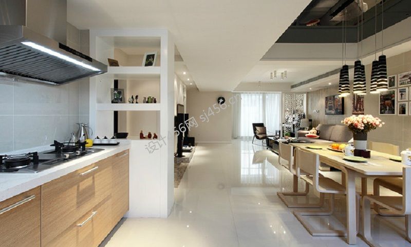 140平米现代简约风格三居室厨房餐厅装修设计图