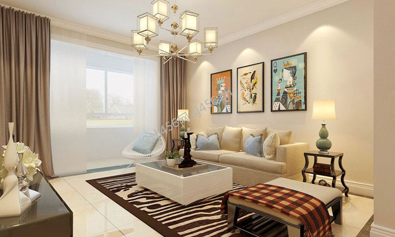 130平米简欧风格三居室客厅布局设计装修案例