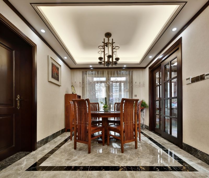 新中式风格160平米三居室餐厅吊顶装修效果图