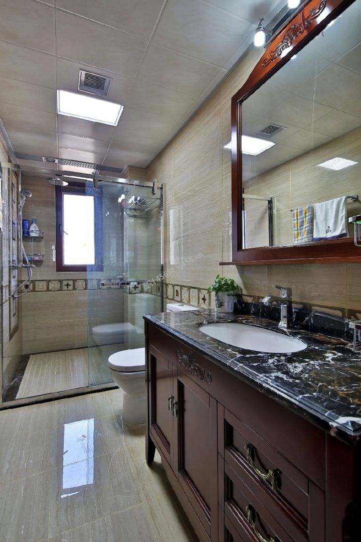 新中式风格160平米三居室卫生间洗手台装修效果图