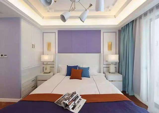 浅蓝色可以让人觉得愈加的安静和温馨,而且浅蓝色假如搭配布艺软装的话,可以给人一种安静、自然、明晰的觉得,另外还有助于入眠,关于那些不容易入睡的业主来说是一个十分不错的选择。