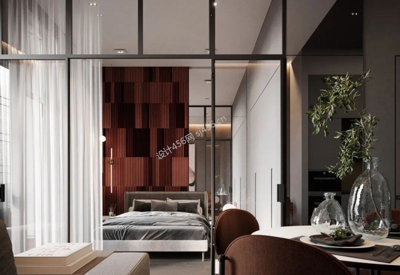 89平米三居现代简约风格卧室餐厅隔断设计图