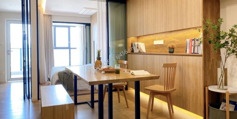 80平简约原木风二居室餐厅酒柜设计装修案例