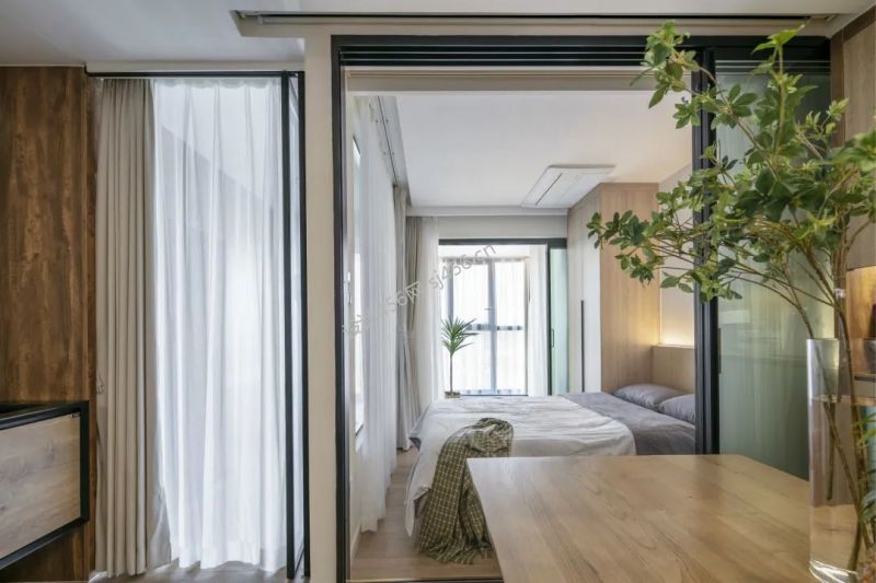 80平简约原木风二居室卧室移门装修案例图片