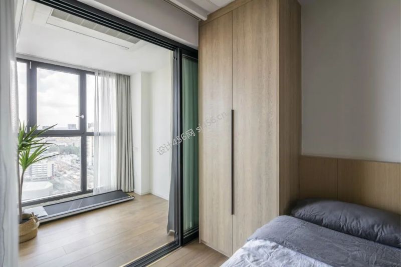 80平简约原木风二居室卧室阳台装修设计图片