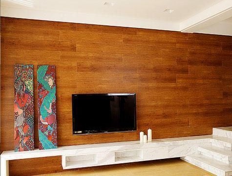 木质材料背景墙,纹理清晰,颜色自然,木质本身就是源于大自然,具有环保实用的效果。造价较低,便宜实用。木质面板比较轻便,是理想的背景墙造型设计选材。