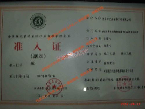 西安亿居装饰工程有限公司成立于1998年,现为中国室内装饰行业协会会员。公司是一家集咨询、设计、施工、监理、饰后服务于一体的专业装饰公司,是西安市首批通过陕西省建筑工程管理局资质认证的装饰企业之一,经过十年的不断发展,亿居人以精湛的技术、完美的设计、合理的价格、优质的服务赢得了社会的信赖。公司成立伊始,就把“诚信经营,服务社会”作为企业发展方针,倡导“科学、时尚、环保、个性”的家装理念,依托本地优势,融入先进的施工工艺,使亿居装饰很快由创业期进入了发展期。几年来,在总经理的带领下,凭西安这方热土之利,以诚实守信为本,施工设计水平日趋规范,生产规模不断扩大,公司产值稳步提高,市场也由西安辐射到周边很多个城市。团体精神是一企业的灵魂所在,无论从装潢咨询、设计效果、工程制作、现场安装,每一个细微的环节,我们都精益求精,力求完美,“没有最好,只有更好”,是我们不懈的追求,“家家是样板,户户有口碑”是我们的服务宗旨,“以人为本,质高价廉”是我们的服务原则,现在亿居装饰已拥有一支具有极强战斗力和凝聚力的队伍,正是由于这支队伍,亿居装饰才能在竞争激烈的装饰市场傲视群雄,一往无前。 “服务无止境,真诚到永远”,是亿居装饰永恒不变的承诺。亿居装饰,用赤诚打造装饰行业知名品牌!创新的设计还真拥有先天良好的体质,集中全国各地的精英而成,故设计的起源来自国际,来自世界,运用最顶尖的设计观念创造新的思维。亿居的创新理念“把国际级的设计放在您的生活中”。创新的服务----亿居提供全方面的服务,从洽谈、方案、接单、签约、设计、施工、完工到售后服务。都有严格的流程要求亿居尤其强调施工期间与业主的沟通和售后保固的承诺,虽然极少有需要售后保固的。亿居的创新理念“永久售后服务”