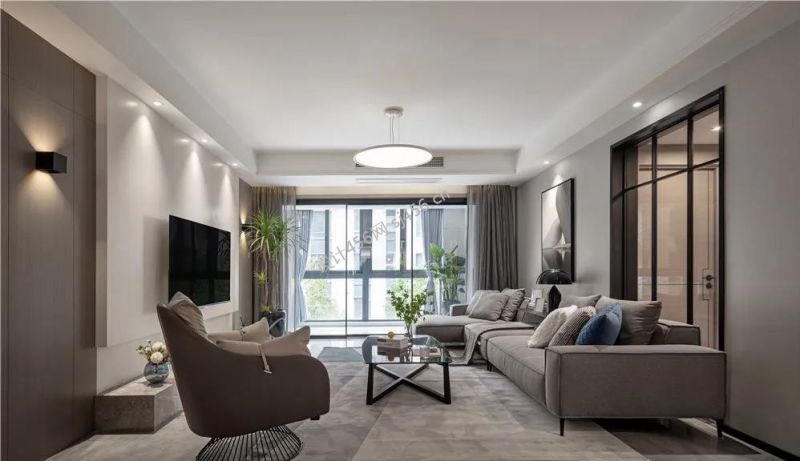 143平米现代简约四居室客厅沙发摆放设计图片