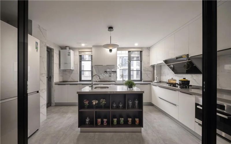 143平米现代简约四居室厨房吧台设计图片