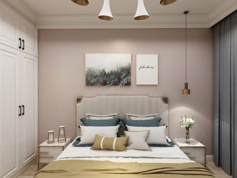现代风格二居室卧室床效果图